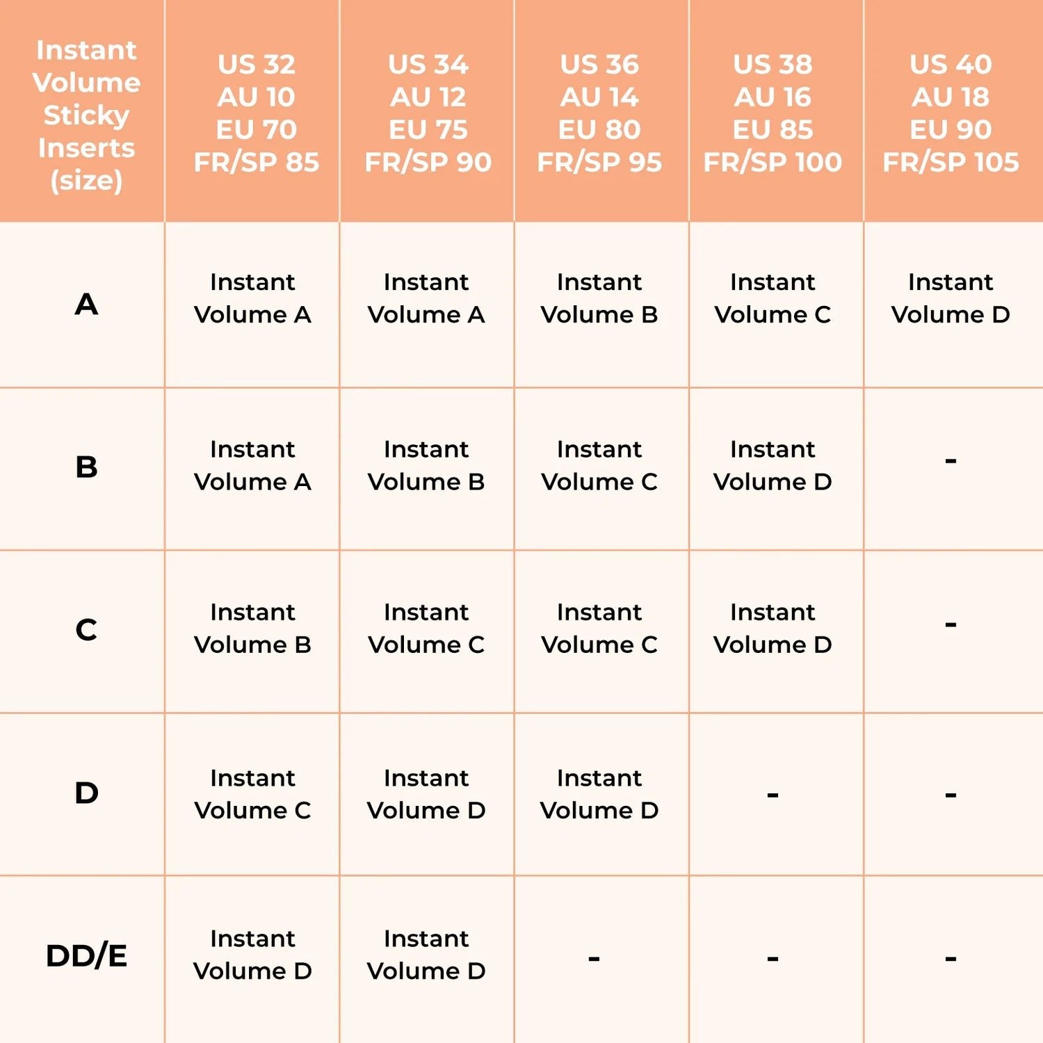 If you are in between sizes, size up for a more dramatic lift or size down for a more subtle lift.