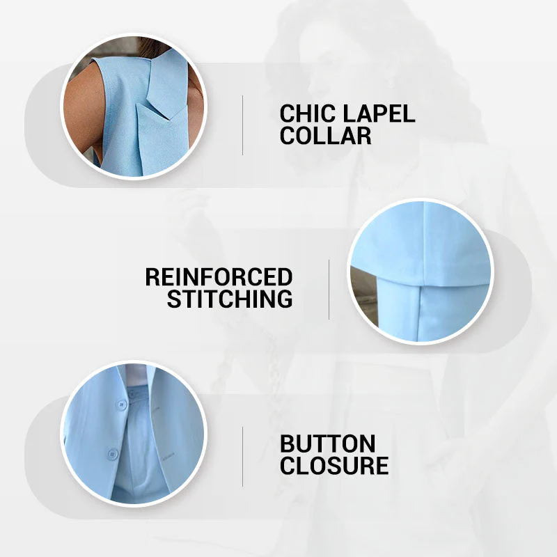 💖Women’s Stylish Sleeveless Blazer & High-Waisted Pants Set